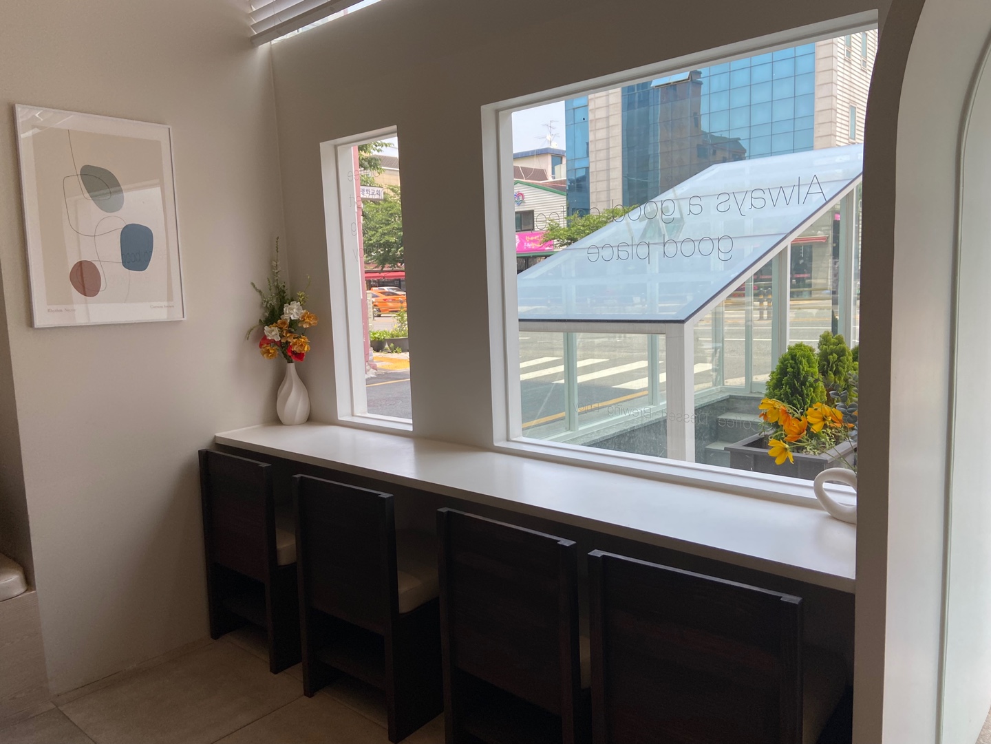 이렇게 창가 자리도 있습니다. 이 자리는 제가 주로 혼자 갈 때 앉는 자리인데 멍 때리기 아주 좋습니다.
