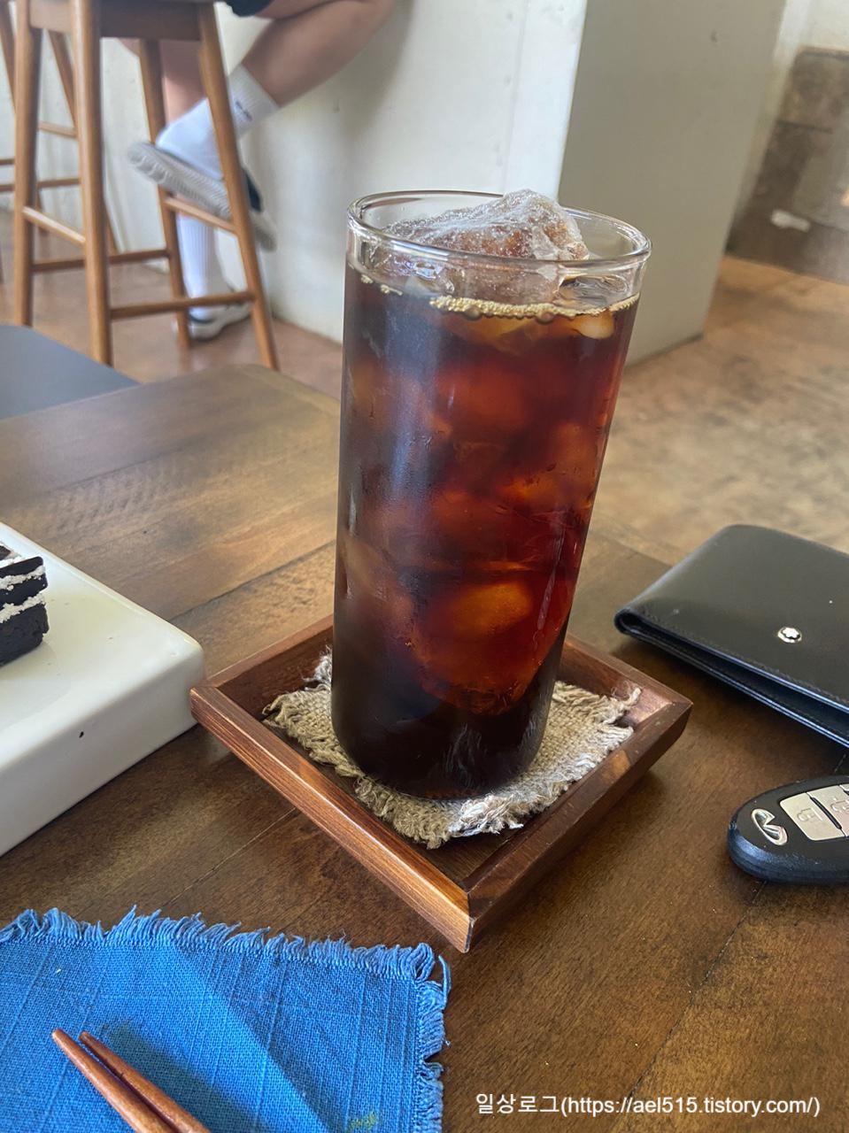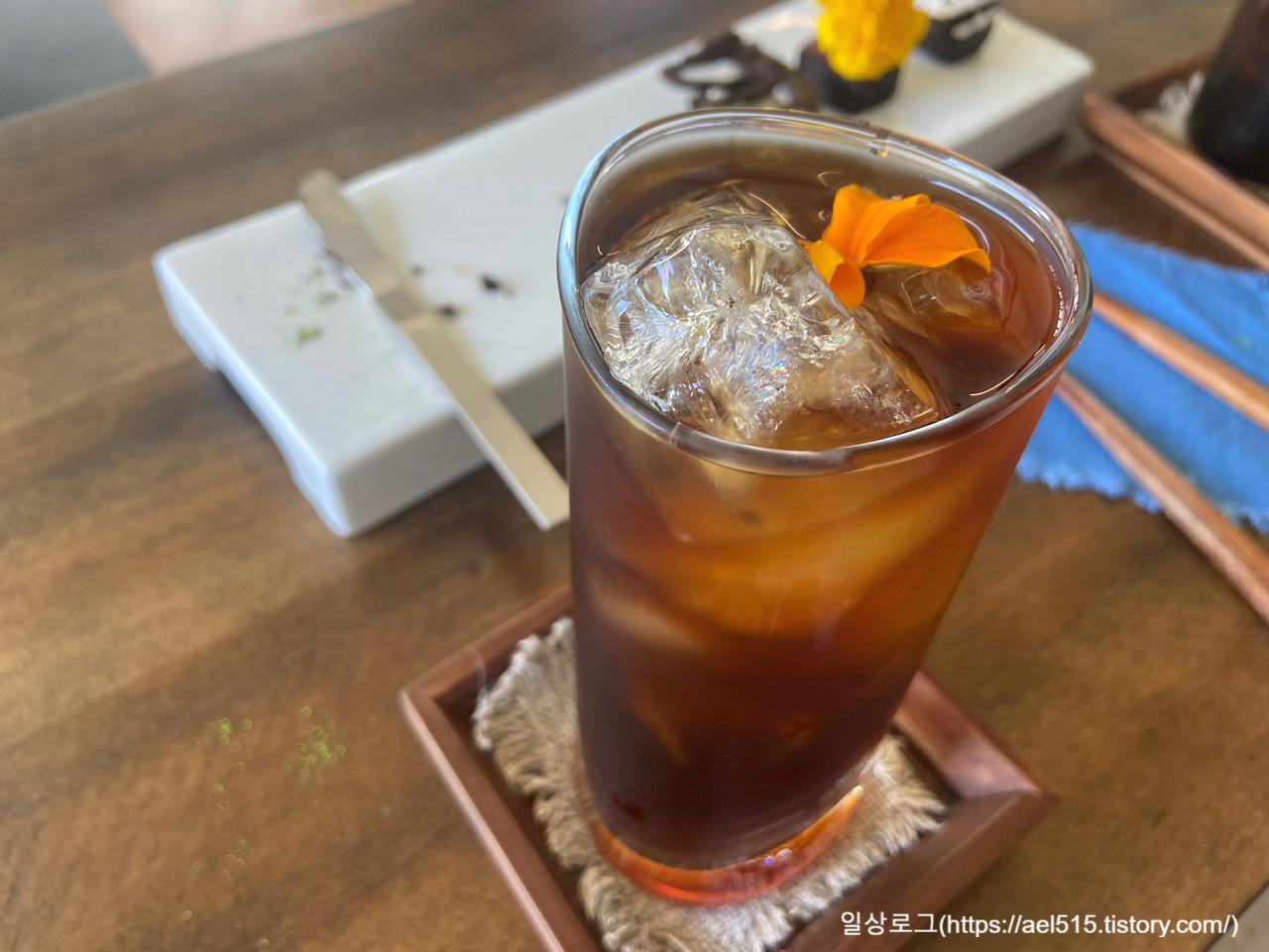 아이스 핸드드립 커피와 아름다운 통로 차입니다.