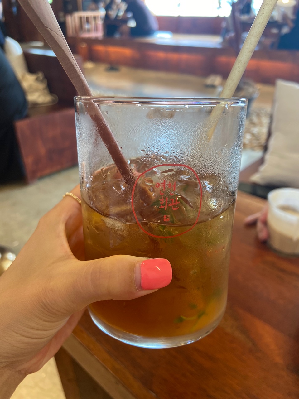 연천회관 마크가 있는 유리컵도 너무 마음에 들었습니다.
