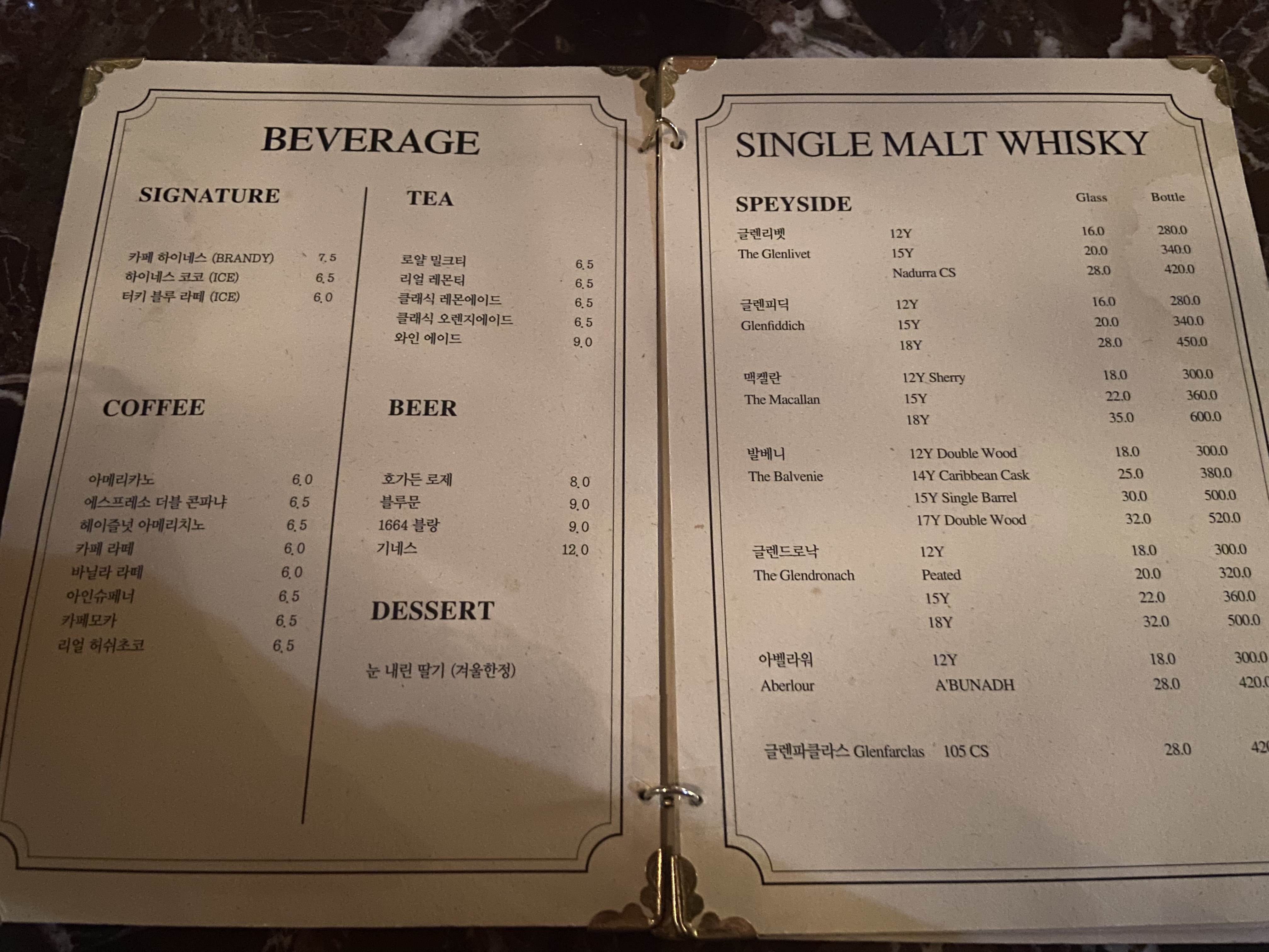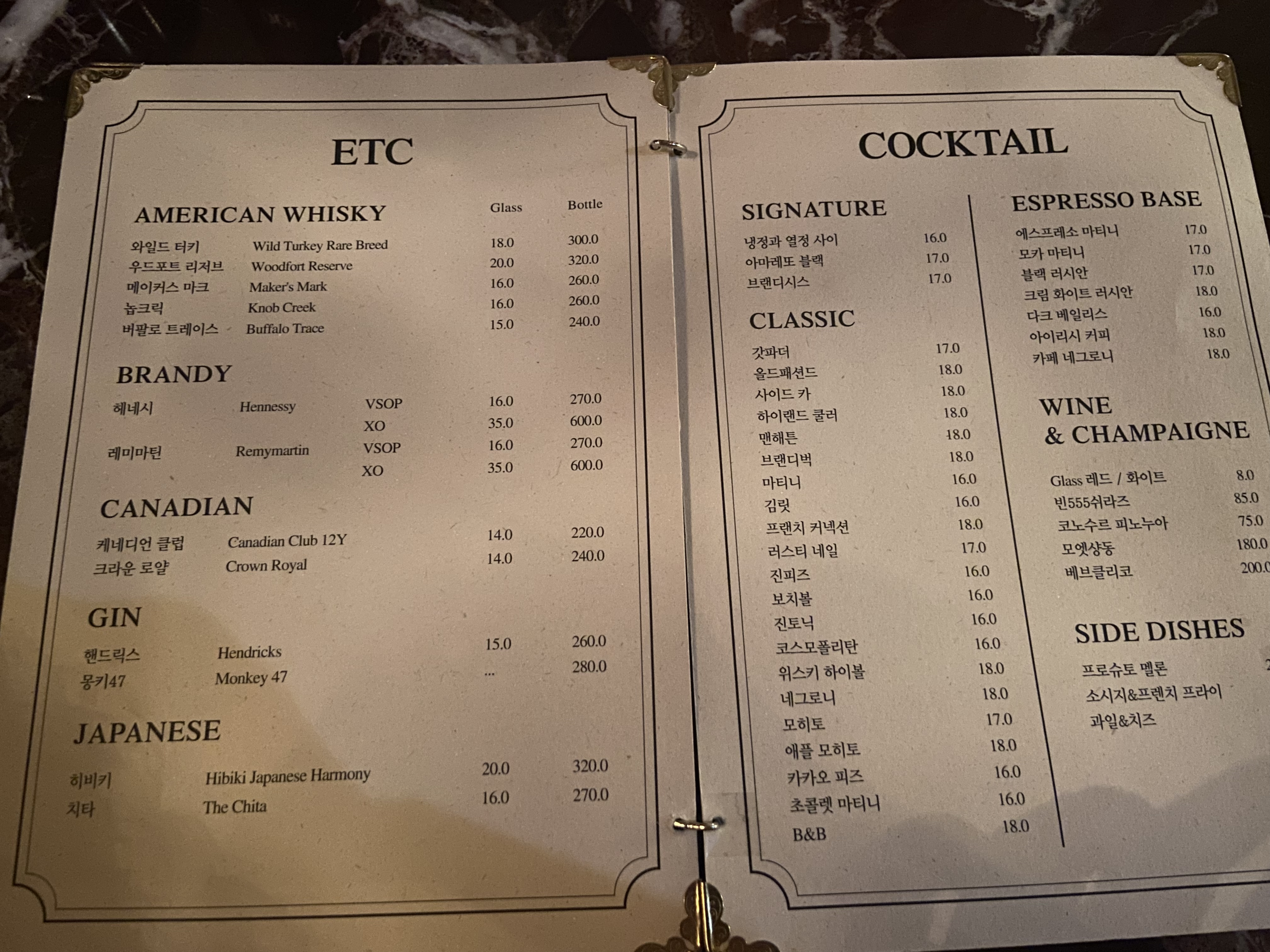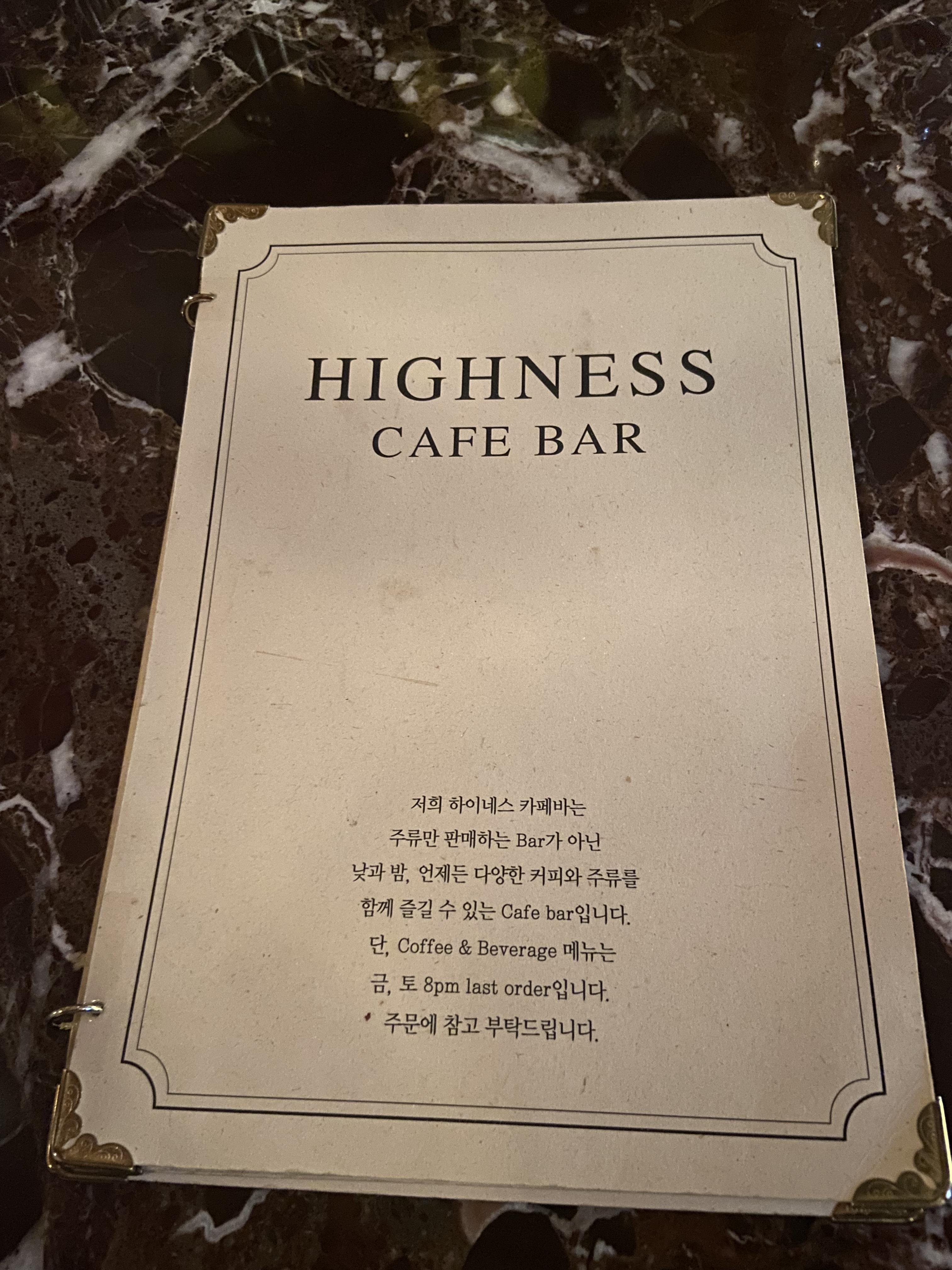 하이네스 메뉴입니다. 메뉴는 커피, 위스키, 칵테일 , 와인 등등 다양합니다.