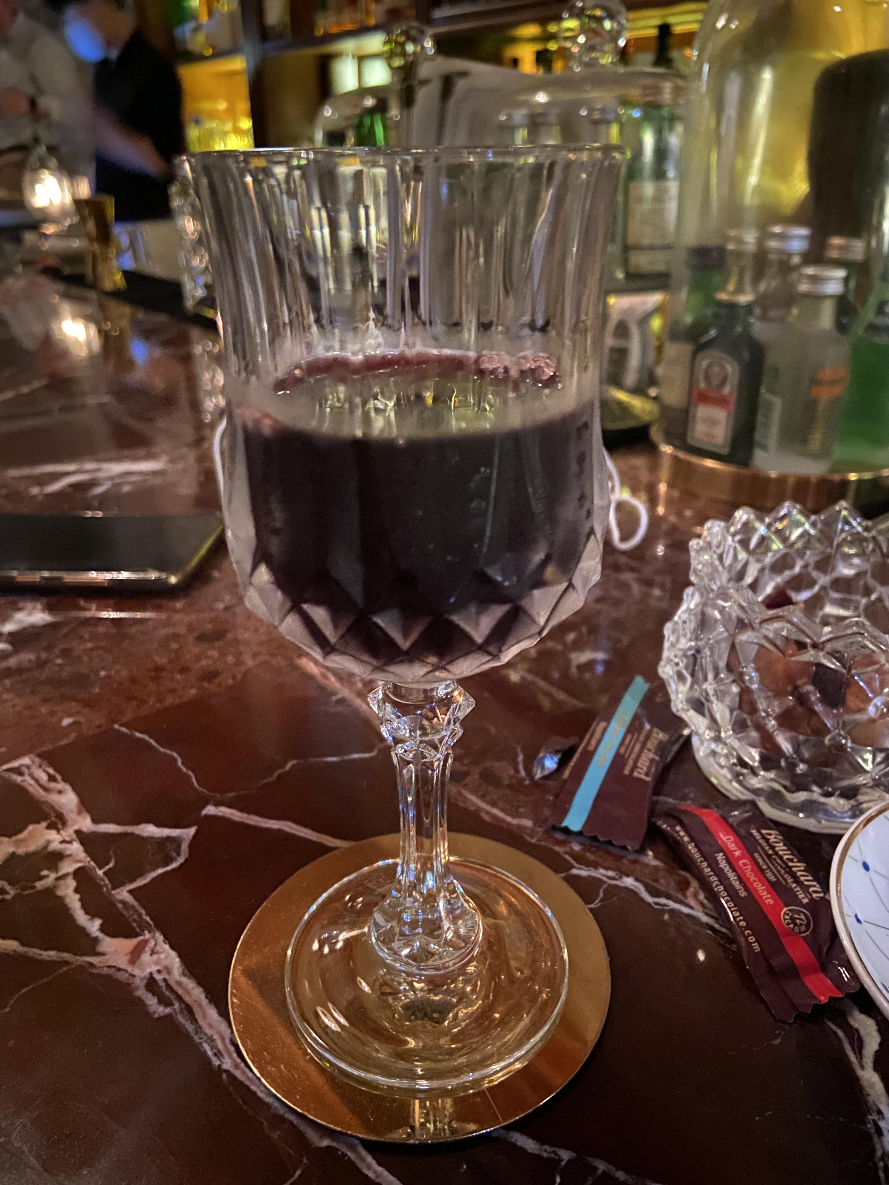 친구는 마지막으로 레드 와인 글라스로 마셨습니다.