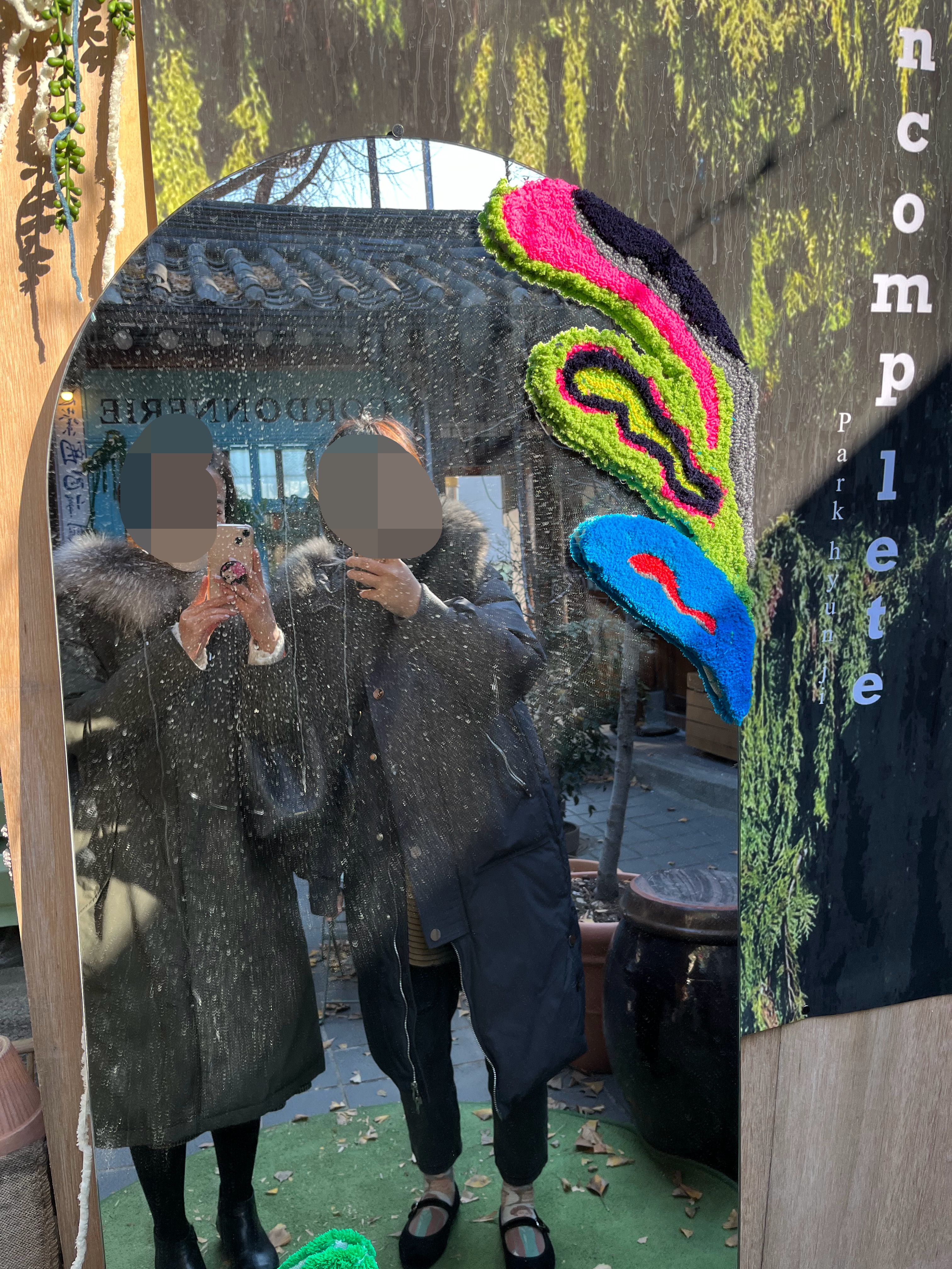 카페 들어가기 전에 큰 거울이 있었는데, 여기서 사진 많이 찍더라고요. 그런데 거울이 너무 더럽...